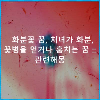 자~ 화분꽃 꿈, 처녀가 화분, 꽃병을 얻거나 훔치는 꿈 :: 관련해몽 에 대해 전체적 정리합니다. 잘 확인 부탁드려요~