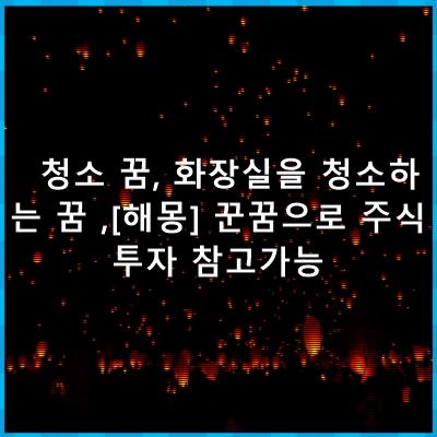청소 꿈, 화장실을 청소하는 꿈 ,[해몽] 꾼꿈으로 주식투자 참고가능 유사꿈, 관련꿈 해몽모음입니다.